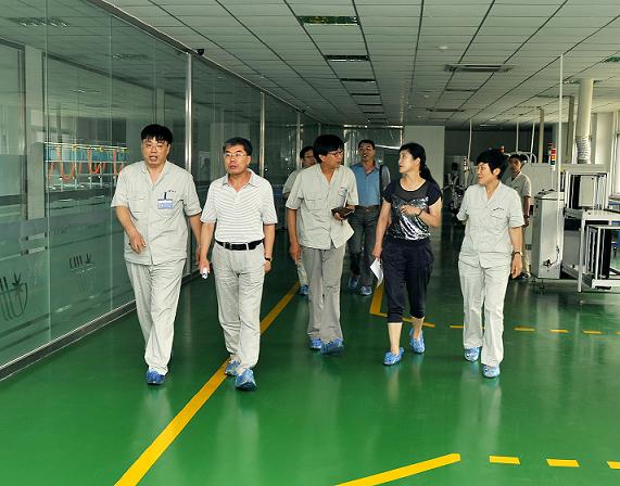 _ 市中級(jí)人民法院副院長(zhǎng)劉奇(左二),凌河區(qū)法院院長(zhǎng)黃萍(右二)到我集團(tuán)生產(chǎn)現(xiàn)場(chǎng)實(shí)地調(diào)研。