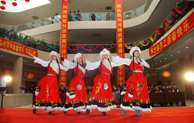金牛送舊千家樂,玉虎迎春萬戶歡。2010年2月11日下午,距離中國人民的傳統(tǒng)節(jié)日--新春佳節(jié)還有兩天時(shí)間,為慶祝這一隆重的節(jié)日,由集團(tuán)黨委、工會、團(tuán)委聯(lián)合主辦的以“共建航星家園”為主題的2010年 迎新春聯(lián)歡會,在產(chǎn)業(yè)園裝典一新的連廊大廳舉行。集團(tuán)黨委書記、董事長劉義專程從外地趕回出席聯(lián)歡會并對大家致以真摯的祝福,對過去一年全體員工的辛勤工 作表示感謝,對駐軍領(lǐng)導(dǎo)、代表的工作支持表示感謝,祝愿大家新春愉快,闔家幸福。聯(lián)歡會得到海軍駐錦代表室的高度重視,鮑海閣總代表、徐大偉副總代表等領(lǐng) 導(dǎo)親臨現(xiàn)場,與各部門、各分公司員工歡聚一堂,共迎虎年新春。